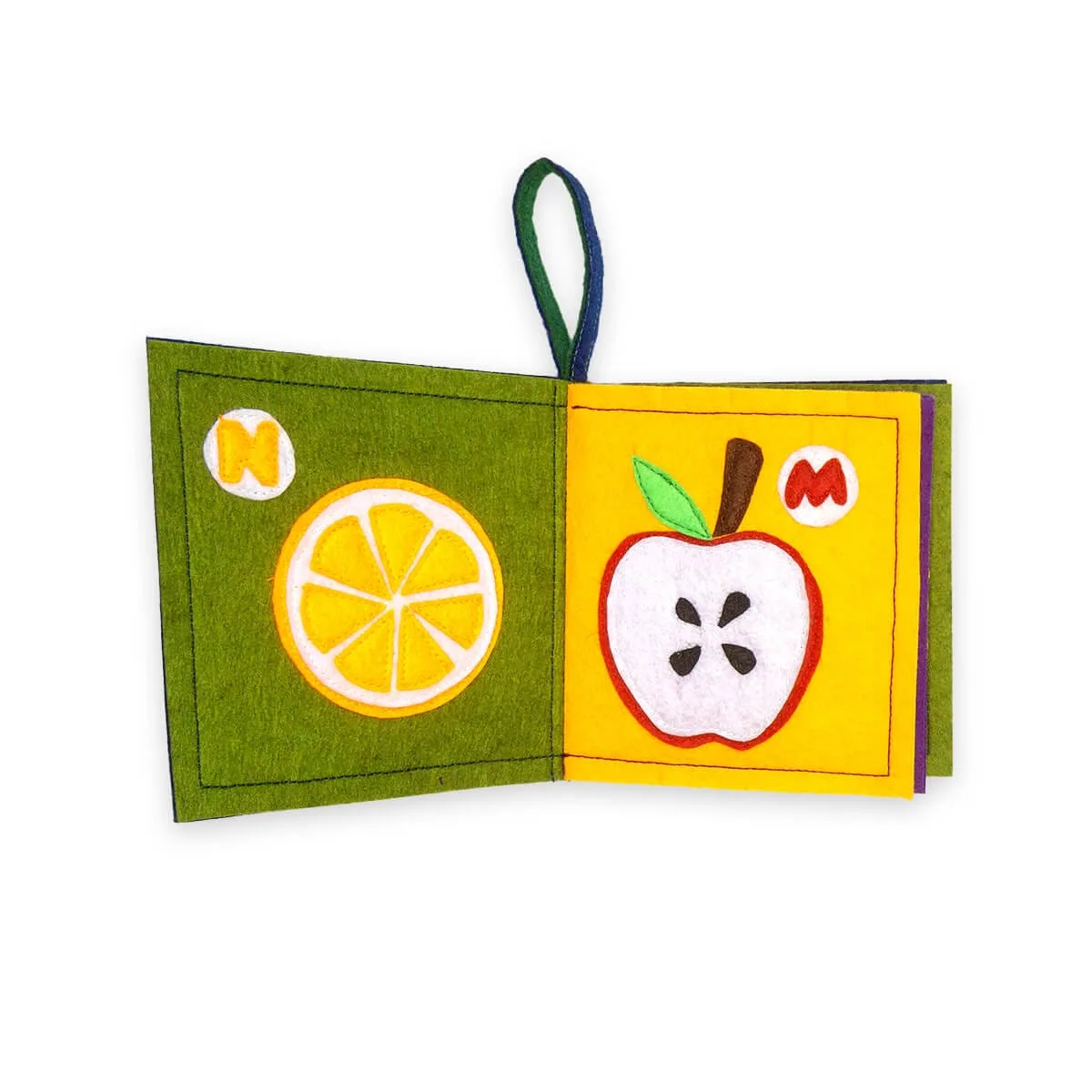 Upprunalegt verð var: 50,00 €.39,90 €Núverandi verð er: 39,90 €.Skynjunarbók úr flísefni með ávaxtamyndum í líflegum hákontrast litum, tilvalin til að örva skynfæri ungbarna og smábarna. Handgerð með styrktu saumum og handfangi fyrir auðvelda meðhöndlun, mælt með af kennurum fyrir sjónræna örvun snemma á ævinni og stuðning við þroska.